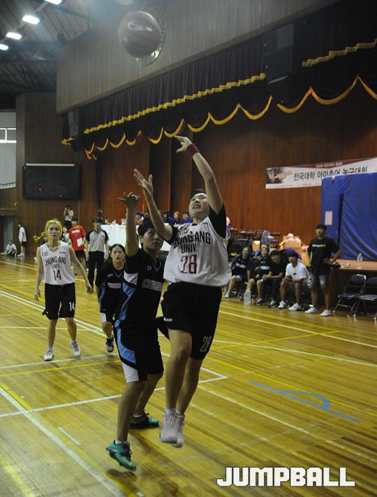 10일 국민대학교 체육관에서 열린 제 33회 국민대학교 총장배 전국대학 아마추어 농구대회 여자대학부 준결승 2경기 명지전문대 W카리스마와 중앙대 BOS의 경기. 명지전문대 W카리스마가 집중력을 잃지 않은 끝에 2차연장에서 중앙대 BOS를 꺾고 결승에 안착했다.