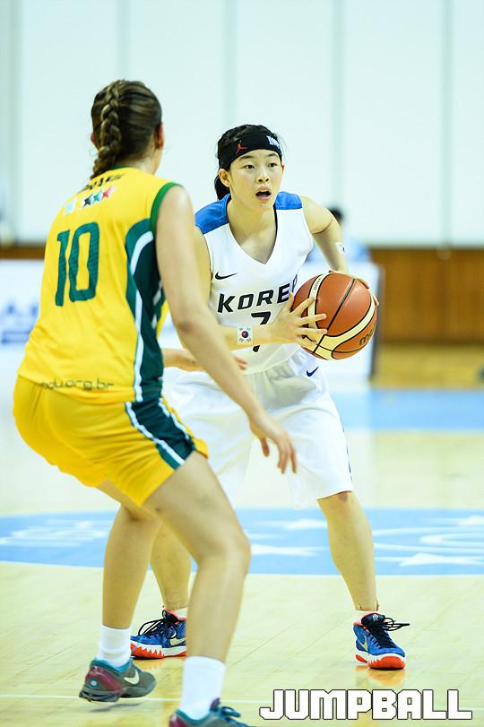 [점프볼=영광/유용우 기자] 12일 영광 스포티움체육관에서 열린 '2015 광주 유니버시아드대회' 여자농구, 한국과 브라질의 13-14 순위결정전 경기에서 한국 유니버시아드 대표팀 강계리가 경기를 리딩하고 있다.