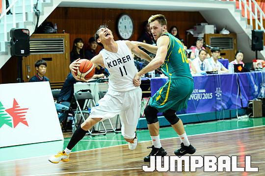 [점프볼=광주/유용우 기자] 12일 광주대학교체육관에서 열린 '2015 광주 유니버시아드대회' 한국과 호주의 9-12 순위결정전 경기, 한국 유니버시아드 대표팀 한희원이 돌파를 파울로 저지 당하고 있다.
