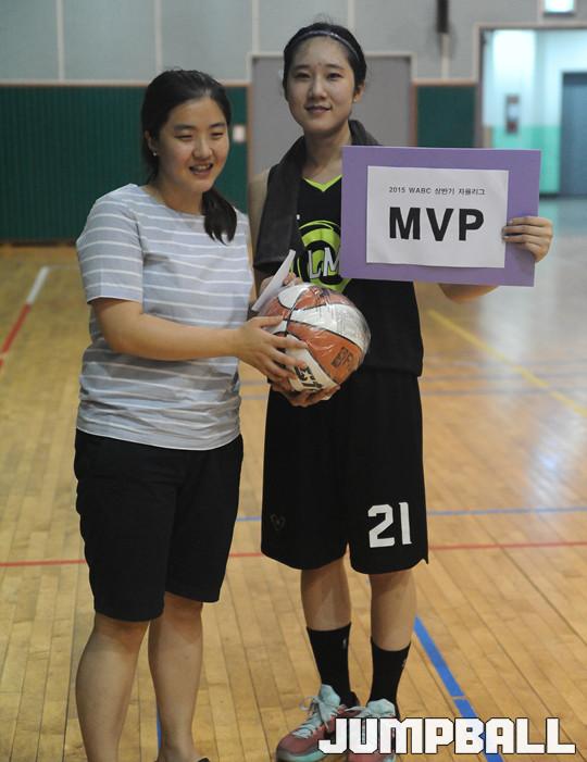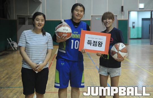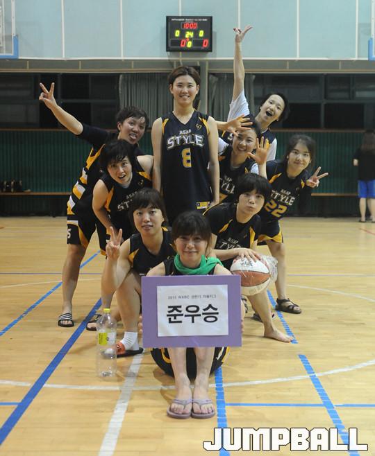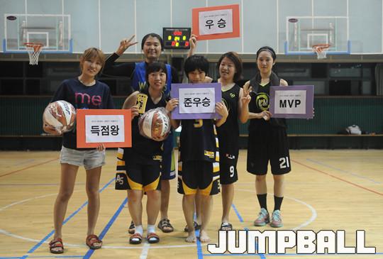 11일 노원중학교 체육관에서 열린 2015 상반기 자율리그 플레이오프 일정을 모두 마친 선수들이 한데 모여 시상식에 참여하고 있다. 한편, 최우수선수상은 LM 구기연이 수상했다.