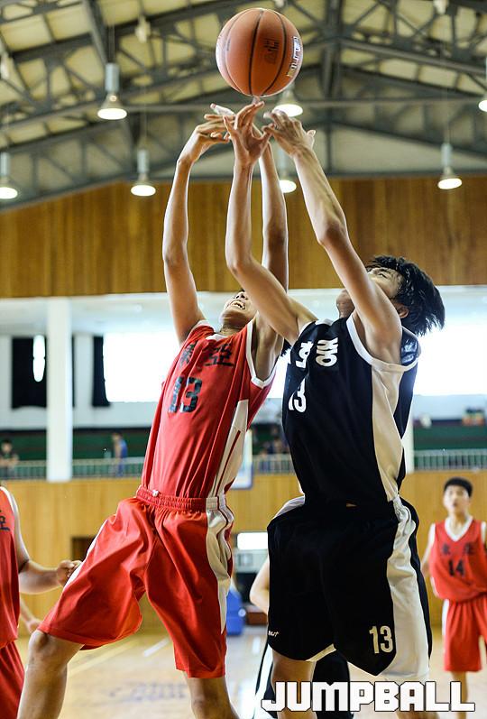 25일 마산고체육관에서 열린 '2015 중고농구 주말리그' 임호중과 동아중의 경기, 동아중 김푸름과 강재명이 리바운드 경합을 벌이고 있다.