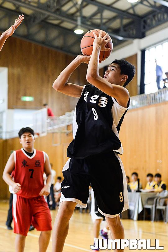 25일 마산고체육관에서 열린 '2015 중고농구 주말리그' 임호중과 동아중의 경기, 임호중 조석호가 미들슛을 쏘고 있다.