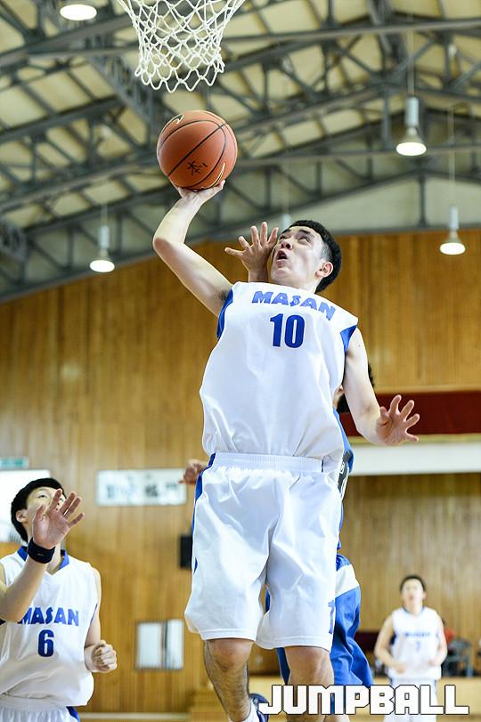 25일 마산고체육관에서 열린 '2015 중고농구 주말리그' 가야고와 마산고의 경기, 마산고 송수현이 팁인으로 슛을 성공시키고 있다.