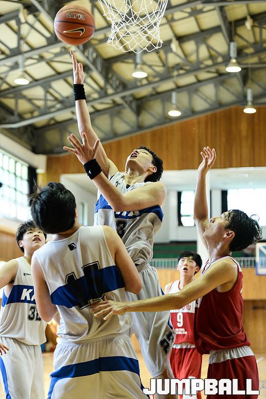 26일 마산고체육관에서 열린 '2015 중고농구 주말리그' 가야고와 무룡고의 경기, 가야고 이승훈이 골밑공격을 시도하고 있다.