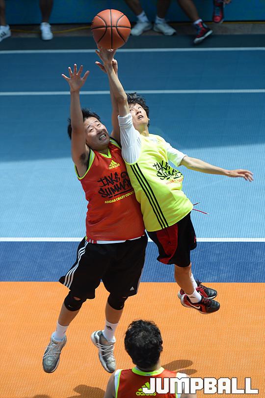 글로벌 리딩 스포츠 브랜드 아디다스는 9일 강남 GT타워 특설 코트에서 ‘아디다스 크레이지코트 2015’농구대회를 진행하였다. KBL 서울 삼성 썬더스의 문태영과 주희정이 방문하여 참가자들과 1대1,2대1과 3점슛 대결을 벌이며 참가자들과 즐거운 시간을 보냈다. 참가팀 선수들이 3대3 경기를 진행하고 있다.