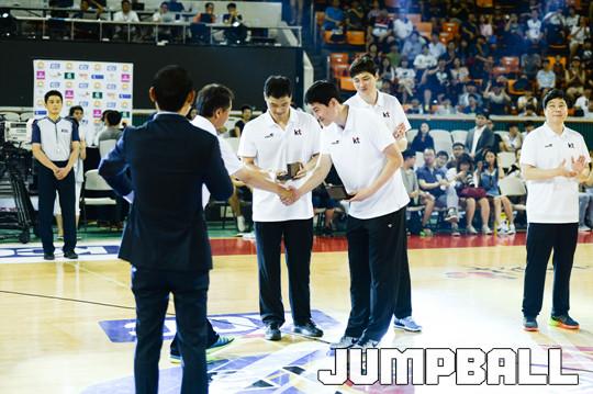 [점프볼=잠실/유용우 기자] KBL과 한국대학농구연맹이 주최하고 KBL이 주관하는 'KCC 2015 프로아마최강전'이 15일 잠실학생체육관에서 열렸다. 프로 10개팀과 대학 5개팀이 참가하였으며, 총 15경기를 진행하며 최강전을 치루게 된다. 모비스 유재학 감독과 조동현 감독이 서로 꽃다발과 모비스 우승반지를 주고 받고 있다.