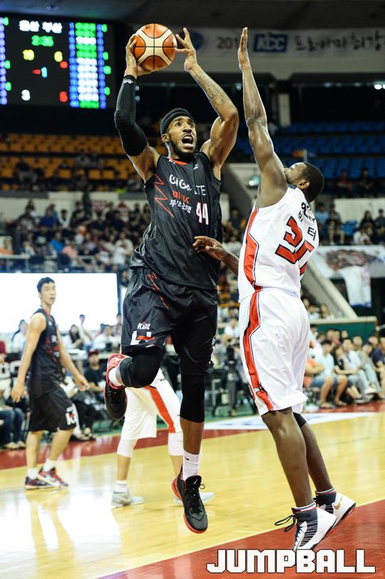 [점프볼=잠실/유용우 기자] KBL과 한국대학농구연맹이 주최하고 KBL이 주관하는 'KCC 2015 프로아마최강전'이 15일 잠실학생체육관에서 열렸다. 프로 10개팀과 대학 5개팀이 참가하였으며, 총 15경기를 진행하며 최강전을 치루게 된다. 1일차 첫경기인 부산 KT와 울산 모비스의 경기, KT 심스의 공격을 모비스 빅터가 수비하고 있다.