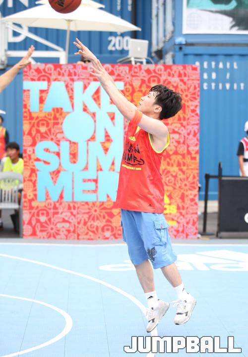 16일 자양동 커먼 그라운드에서 열린 2015 아디다스 크레이지 코트 서울 대회에 참가한 선수가 3점슛을 시도하고 있다.