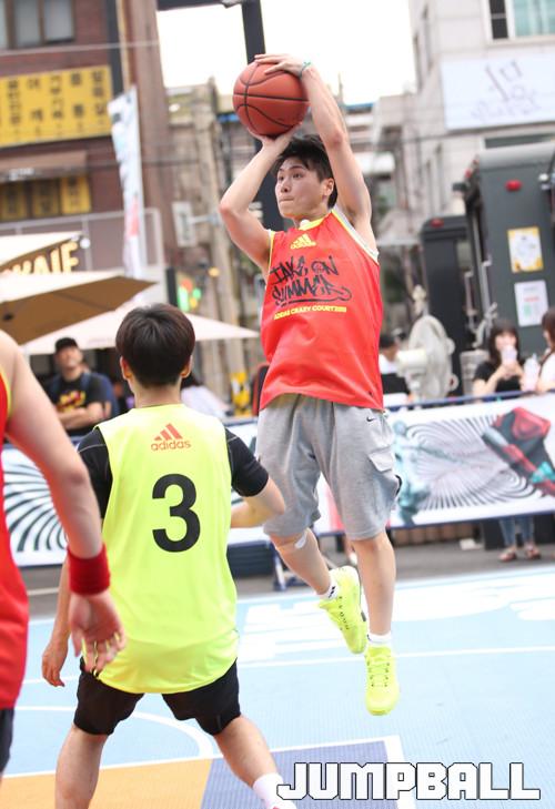 16일 자양동 커먼그라운드에서 열린 2015 아디다스 크레이지코트 서울 경기에서 참가한 남자 동호인이 과감하게 돌파를 시도한 뒤 점프슛을 날리고 있다.