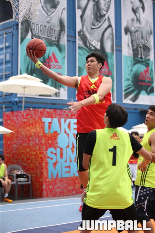 16일 자양동 커먼그라운드에서 열린 2015 아디다스 크레이지코트 서울 경기, 레드팀의 박용환이 육중한 몸에도 불구하고 부드럽게 골밑을 파고 들어 슛을 시도하고 있다.