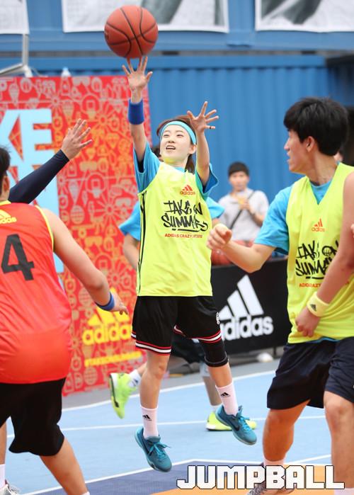 16일 자양동 커먼그라운드에서 열린 2015 아디다스 크레이지코트 서울 경기, 작고 갸냘픈 여성이지만 코트에서는 뜨거운 승부욕을 보여준 한 여성 선수가 혼신의 힘을 다해 중거리슛을 날리고 있다.