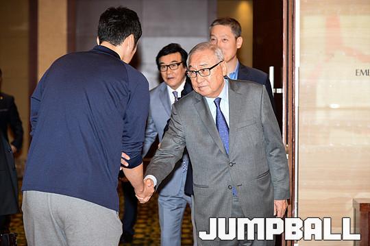 [점프볼=잠실/유용우 기자] 1일 롯데호텔 에메랄드룸에서 KBL이 주최하는 '2015 KCC 아시아 프로농구 챔피언쉽'의 환영 만찬이 열렸다. 김영기 총재의 환영사로 시작하여 김영기 총재가 랴오닝 플라잉 레오파즈의 궈 쉬치앙 감독, 토크 앤 텍스트 트로팡 텍스터즈의 빌라비센시오 단장, 울산 모비스의 정호인 단장, 원주 동부 프로미의 성인완 단장에게 참가 기념패를 전달하며 만찬을 시작하였다.