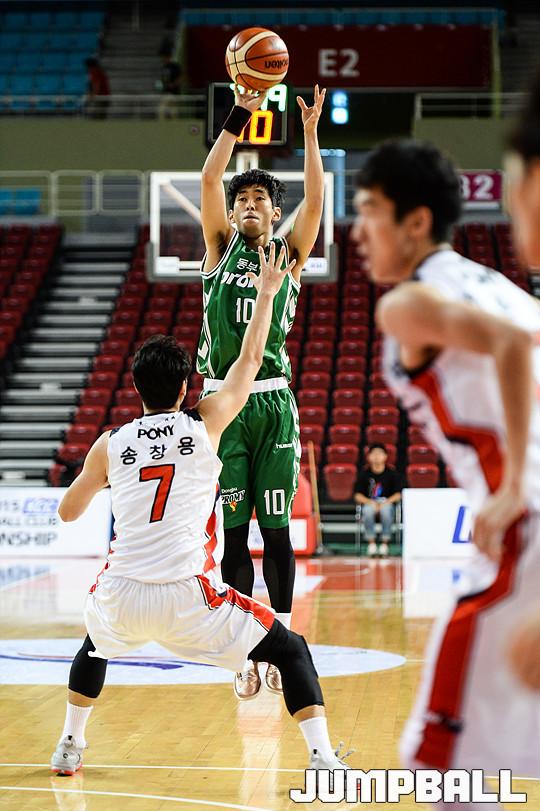3일 인천 삼산체육관에서 열린 '2015 KCC 아시아 프로농구 챔피언쉽' 원주 동부와 울산 모비스의 경기, 동부 김종범이 슛을 시도하고 있다.