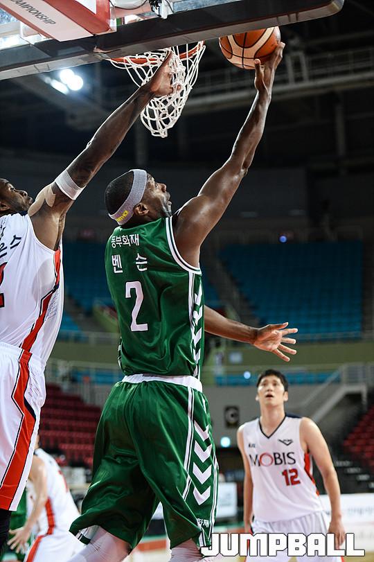 3일 인천 삼산체육관에서 열린 '2015 KCC 아시아 프로농구 챔피언쉽' 원주 동부와 울산 모비스의 경기, 동부 로드 벤슨이 슛을 시도하고 있다.