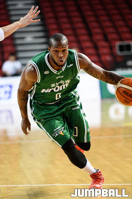 3일 인천 삼산체육관에서 열린 '2015 KCC 아시아 프로농구 챔피언쉽' 원주 동부와 울산 모비스의 경기, 동부 라샤드 제임스가 돌파를 하고 있다.
