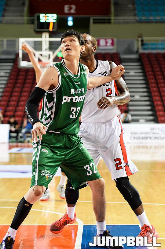 3일 인천 삼산체육관에서 열린 '2015 KCC 아시아 프로농구 챔피언쉽' 원주 동부와 울산 모비스의 경기, 동부 김주성이 박스아웃을 하며 모비스 라이온스를 수비하고 있다.