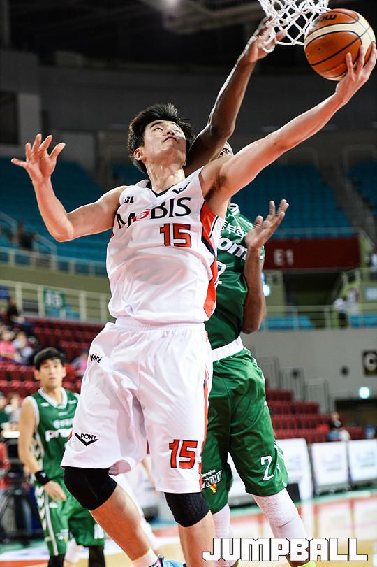 3일 인천 삼산체육관에서 열린 '2015 KCC 아시아 프로농구 챔피언쉽' 원주 동부와 울산 모비스의 경기, 모비스 배수용이 리버스 레이업으로 득점에 성공하고 있다.