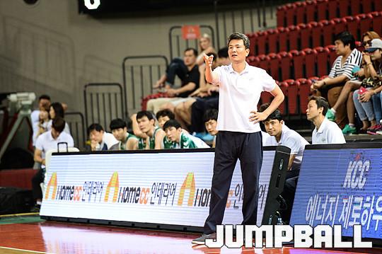 3일 인천 삼산체육관에서 열린 '2015 KCC 아시아 프로농구 챔피언쉽' 원주 동부와 울산 모비스의 경기, 동부 김영만 감독이 선수들에게 작전을 지시하고 있다.