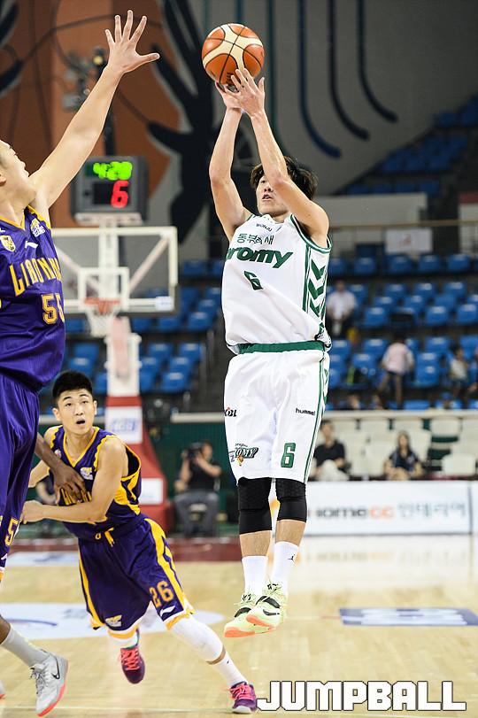 5일 잠실 학생체육관에서 열린 '2015 KCC 아시아 프로농구 챔피언쉽' 중국 랴오닝과 원주 동부의 경기, 동부 두경민이 미들슛을 시도하고 있다.