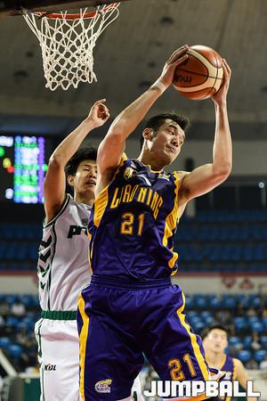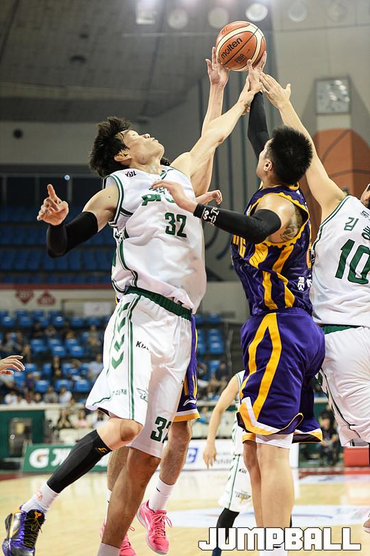 5일 잠실 학생체육관에서 열린 '2015 KCC 아시아 프로농구 챔피언쉽' 중국 랴오닝과 원주 동부의 경기, 동부 김주성이 리바운드 경쟁을 벌이고 있다.