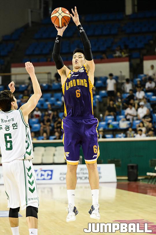 5일 잠실 학생체육관에서 열린 '2015 KCC 아시아 프로농구 챔피언쉽' 중국 랴오닝과 원주 동부의 경기, 랴오닝 허티엔주가 슛을 시도하고 있다.