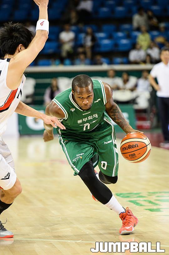 6일 잠실 학생체육관에서 열린 '2015 KCC 아시아 프로농구 챔피언쉽' 울산 모비스와 원주 동부의 결승 경기, 동부 라샤드 제임스가 돌파를 하고 있다.
