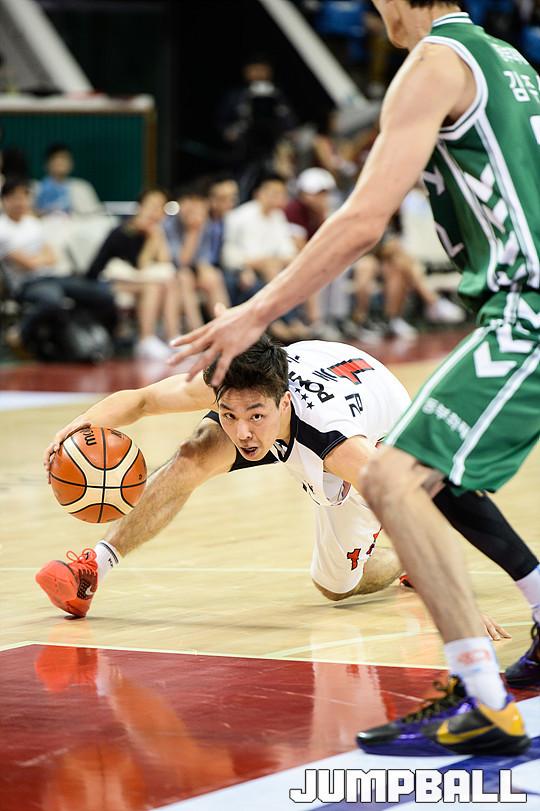 6일 잠실 학생체육관에서 열린 '2015 KCC 아시아 프로농구 챔피언쉽' 울산 모비스와 원주 동부의 결승 경기, 모비스 김종근이 넘어지며 다시 일어서고 있다.