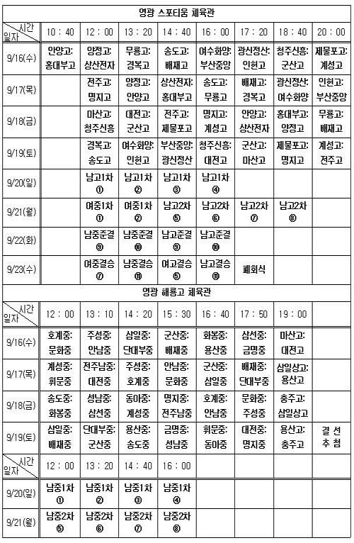 C조| 여수화양고, 부산중앙고, 광신정산고, 인헌고