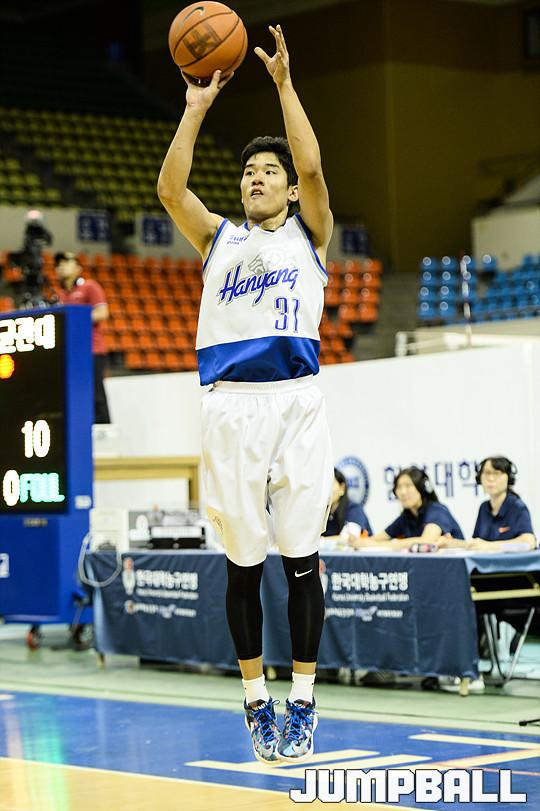 [점프볼=왕십리/유용우 기자] 10일 한양대체육관에서 열린 2015 남녀 대학농구리그 한양대와 성균관대 경기, 한양대 김기범이 3점슛을 시도하고 있다.
