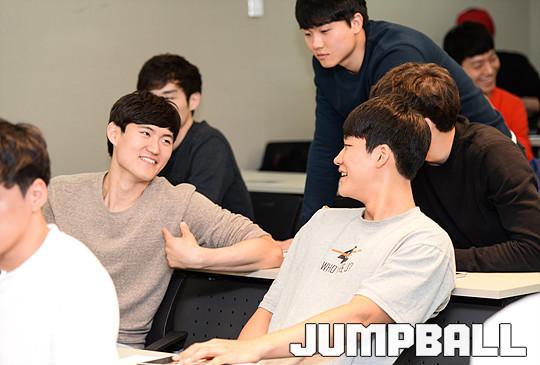 [점프볼=신사/유용우 기자] 25일 신사동 KBL센터에서 '2015 KBL 국내신인선수 드래프트 참가선수 예비소집'이 열렸다. 참가한 신인 드래프트 참가자들은 10월 26일에 개최되는 드래프트 트라이아웃에 대한 일정과 신인 드래프트의 추첨방식, 계약관련사항, 관련규정등 전반적인 부분에 대한 설명을 들었다.설명회가 끝나고 체중과 신장측정 그리고 미디어 프로필 촬영에 임하며, 2015 신인 드래프트의 예비소집 일정을 소화하였다. 고려대 이동엽과 동국대 이대헌이 설명회전에 이야기를 나누고 있다.