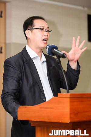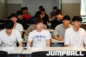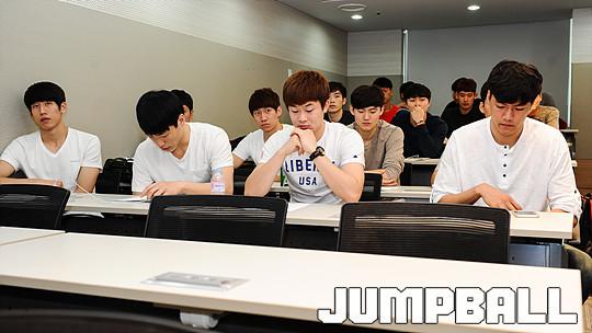 [점프볼=신사/유용우 기자] 25일 신사동 KBL센터에서 '2015 KBL 국내신인선수 드래프트 참가선수 예비소집'이 열렸다. 참가한 신인 드래프트 참가자들은 10월 26일에 개최되는 드래프트 트라이아웃에 대한 일정과 신인 드래프트의 추첨방식, 계약관련사항, 관련규정등 전반적인 부분에 대한 설명을 들었다.설명회가 끝나고 체중과 신장측정 그리고 미디어 프로필 촬영에 임하며, 2015 신인 드래프트의 예비소집 일정을 소화하였다. 참가 선수들이 신인드래프트에 대한 설명을 경청하고 있다.