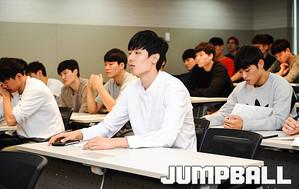 [점프볼=신사/유용우 기자] 25일 신사동 KBL센터에서 '2015 KBL 국내신인선수 드래프트 참가선수 예비소집'이 열렸다. 참가한 신인 드래프트 참가자들은 10월 26일에 개최되는 드래프트 트라이아웃에 대한 일정과 신인 드래프트의 추첨방식, 계약관련사항, 관련규정등 전반적인 부분에 대한 설명을 들었다.설명회가 끝나고 체중과 신장측정 그리고 미디어 프로필 촬영에 임하며, 2015 신인 드래프트의 예비소집 일정을 소화하였다. 고려대 이동엽이 신장을 측정하고 있다.