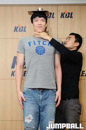 [점프볼=신사/유용우 기자] 25일 신사동 KBL센터에서 '2015 KBL 국내신인선수 드래프트 참가선수 예비소집'이 열렸다. 참가한 신인 드래프트 참가자들은 10월 26일에 개최되는 드래프트 트라이아웃에 대한 일정과 신인 드래프트의 추첨방식, 계약관련사항, 관련규정등 전반적인 부분에 대한 설명을 들었다.설명회가 끝나고 체중과 신장측정 그리고 미디어 프로필 촬영에 임하며, 2015 신인 드래프트의 예비소집 일정을 소화하였다. 고졸에서 바로 드래프트에 참가하여 화제를 모으고 있는 삼일상업고 송교창이 신장을 측정하고 있다.