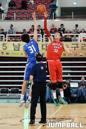 [점프볼=안암/유용우 기자] 12일 고려대 화정체육관에서 열린 '2015 남녀 대학농구리그' 고려대와 연세대의 챔피언 결정전 1차전 경기, 고려대 이민형 감독이 선수들에게 박수를 보내고 있다.