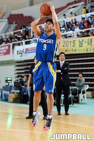 [점프볼=안암/유용우 기자] 12일 고려대 화정체육관에서 열린 '2015 남녀 대학농구리그' 고려대와 연세대의 챔피언 결정전 1차전 경기, 연세대 박인태가 인사이드로 돌파하며 레이업을 올리고 있다.