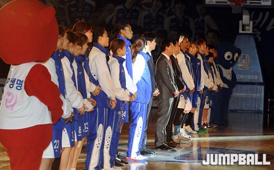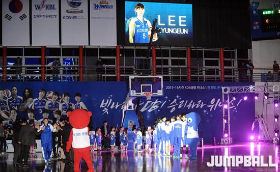 31일 경기도 구리시체육관에서 열린 KDB생명 2015-2016 여자프로농구 개막전 식전행사로 KDB생명 홈 선수단 소개와 개회 선언으로 정규리그 시작을 알리고 있다.