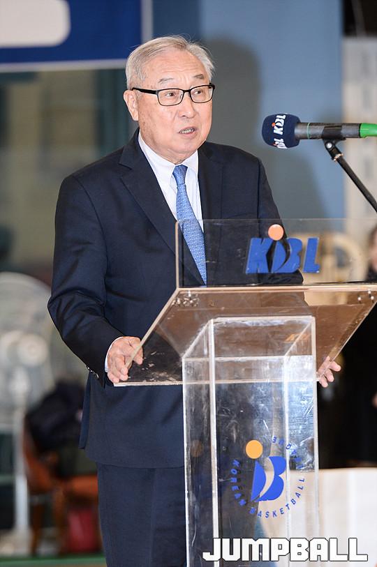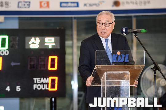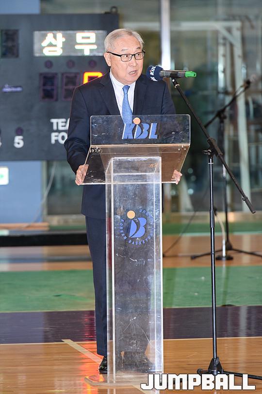 KBL 김영기 총재가 D리그 개회를 선언하고 있다.