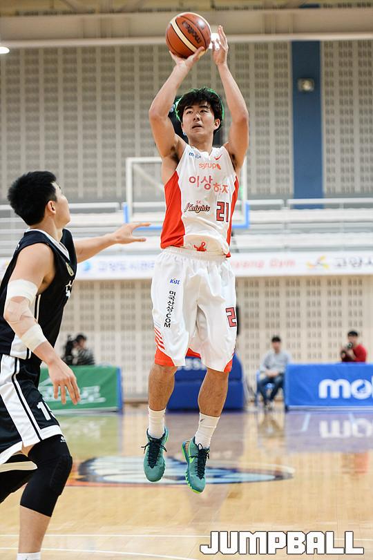 [점프볼=고양/유용우 기자] 2일 고양실내체육관내 보조체육관에서 열린 '2015-2016 KBL D리그' 신협 상무와 서울 SK의 경기, SK 김우겸이 수비를 달고 슛을 시도하고 있다.