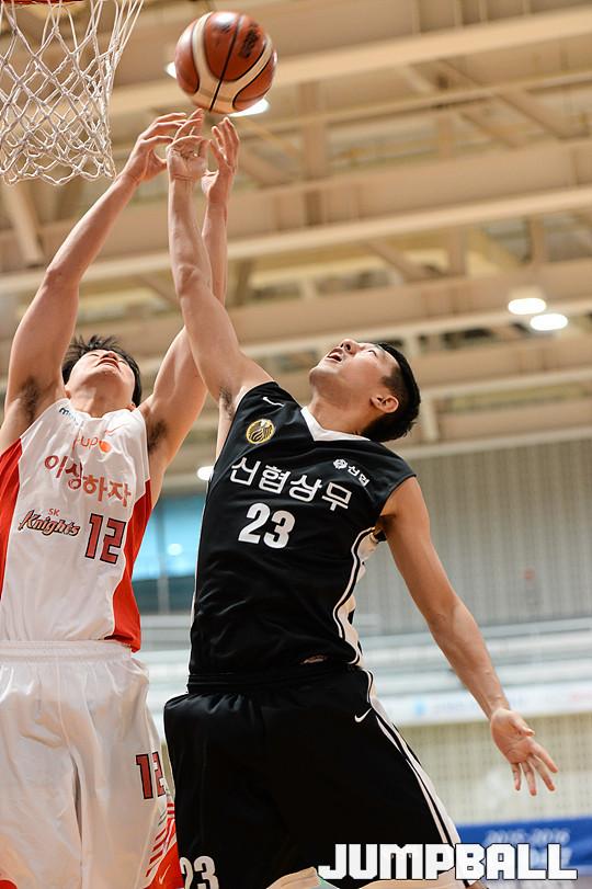 [점프볼=고양/유용우 기자] 2일 고양실내체육관내 보조체육관에서 열린 '2015-2016 KBL D리그' 신협 상무와 서울 SK의 경기, 상무 차바위가 리바운드를 시도하고 있다.