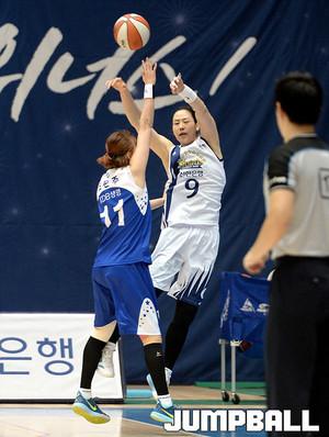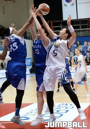 11일 구리 실내체육관에서 열린 KDB생명 2015-2016 여자프로농구 구리 KDB생명과 인천 신한은행 의 경기, KDB생명 비키가 신한은행 조은주의 수비를 피해 레이업슛을 시도하고있다.