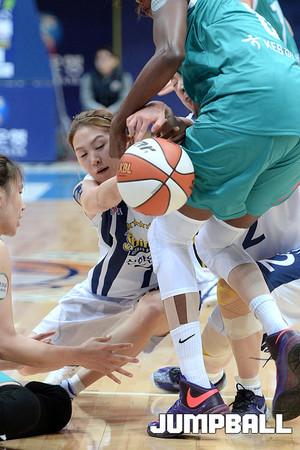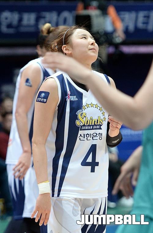 04일 인천 도원체육관에서 열린 'KDB생명 2015-2016 여자프로농구' 인천 신한은행 과 부천 하나외환 의 경기, 실책을 한 신한은행 최윤아가 허공을 쳐다보며 아쉬워하고있다.