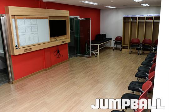 서울 삼성은 라커룸이 ‘투룸’ 형태로 되어있다. 문을 열고 들어가면 코칭스태프와 선수단이 영상이나 보드판을 통해 미팅을 할 수 있는 형태의 라커룸이 있다. 경기 전 이상민 삼성 감독이 기자들과 당일경기에 대해 다양한 얘기 나누는 장소이기도 하다. 여기서 조금 더 안쪽으로 들어가면 선수들이 옷을 갈아입거나 테이핑을 하고, 간단한 마사지를 받는 방이 하나 더 마련되어 있다.