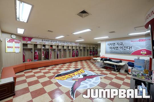라커룸은 코칭스태프와 선수단이 경기 시작에 앞서 일찌감치 체육관에 도착, 숙소에서 준비한 필승전략을 마지막으로 점검하고 결의를 다지는 장소다. 경기에 앞서 발목, 손가락 등에 테이핑을 하는 곳도 라커룸이다. 다만, 체육관에 숙소와 치료실이 모두 갖춰진 안양 KGC인삼공사 선수단은 치료실에서 테이핑까지 모두 마친 후 라커룸으로 들어온다. 대부분의 선수가 유니폼까지 입은 후 라커룸으로 내려오지만, KGC인삼공사 관계자는 “찰스 로드 등 본인만의 루틴이 있는 선수들은 유니폼을 챙겨 와서 갈아입기도 한다”라고 귀띔했다.