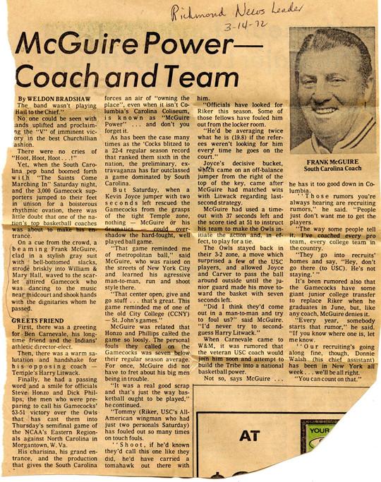 이후 사우스캐롤라이나 대학은 1969-1970시즌 ACC 컨퍼런스간 경기에서 14승 무패를 기록하며 ACC 정상에 오르는 등 성공가도를 이어갔고 1971년부터 1973년까지는 3년 연속 NCAA 토너먼트 16강(Sweet 16)에 오르는 기염을 토했다. 맥과이어는 1980년 현역 감독에서 은퇴했다. 30년 동안 그가 승률 5할을 기록하지 못한 시즌은 단 3시즌 밖에 없었다. 또한 그는 30년 동안 감독을 지내며 수많은 제자들을 길러냈다.