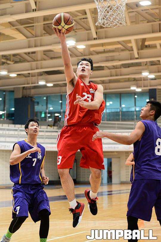 [점프볼=고양/유용우 기자] 22일 고양 실내보조체육관에서 열린 중국 상하이 U18대표팀과 고양 오리온 D리그의 연습경기, 오리온 김민섭이 공격을 시도하고 있다.