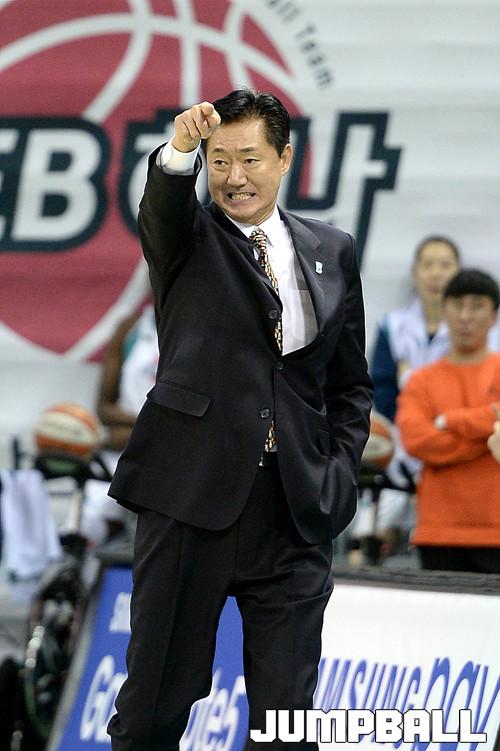 08일 부천 실내체육관에서 열린 'KDB생명 2015-2016 여자프로농구' 부천 KEB하나은행 과 인천 신한은행 의 경기, KEB하나은행 박종천 감독이 선수들에게 공격을 지시하고있다.
