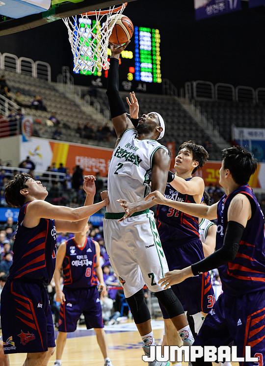 [점프볼=고양/유용우 기자] 26일 고양 실내체육관에서 열린 '2015-2016 KCC 프로농구' 고양 오리온과 원주 동부의 플레이오프 6강 1차경기, 동부 벤슨이 수비 속에 슛을 시도하고 있다.