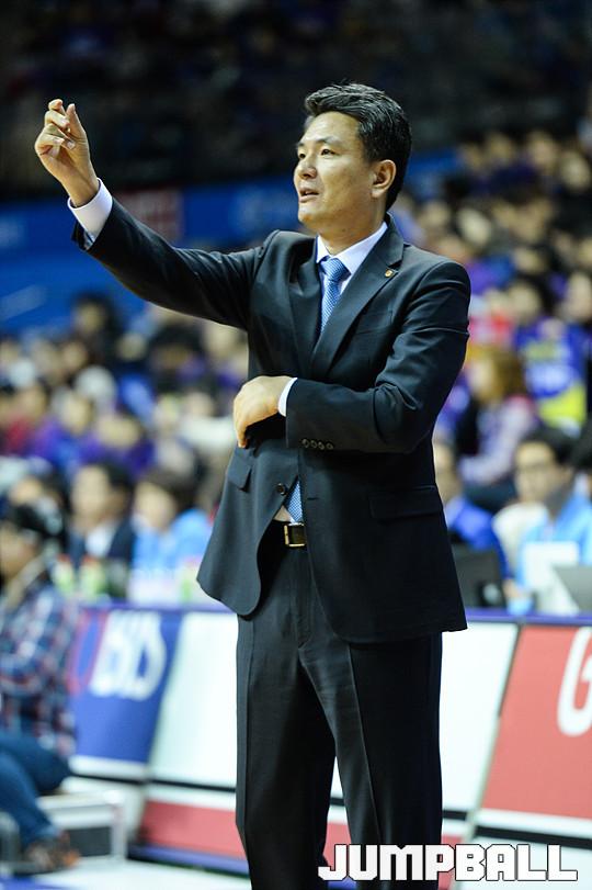[점프볼=고양/유용우 기자] 28일 고양 실내체육관에서 열린 '2015-2016 KCC 프로농구' 고양 오리온과 원주 동부의 플레이오프 6강 2차경기, 동부 김영만 감독이 선수들을 지도하고 있다.