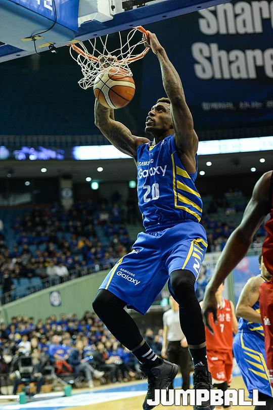 [점프볼=잠실/유용우 기자] 29일 잠실 실내체육관에서 열린 '2015-2016 KCC 프로농구' 서울 삼성과 안양 KGC 인삼공사의 플레이오프 3차경기, 삼성 라틀리프가 덩크를 성공시키고 있다.