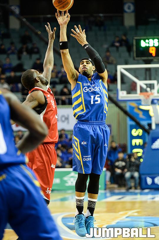 [점프볼=잠실/유용우 기자] 29일 잠실 실내체육관에서 열린 '2015-2016 KCC 프로농구' 서울 삼성과 안양 KGC 인삼공사의 플레이오프 3차경기, 삼성 문태영이 중거리슛을 시도하고 있다.